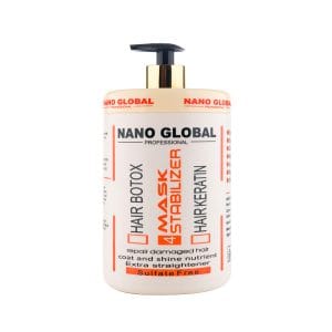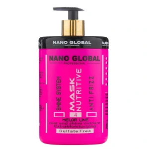 ماسک مو کراتین نانوگلوبال مدل ۷، فاقد سولفات، مناسب موهای کراتین‌شده و آسیب‌دیده. حاوی روغن آرگان، آبرسانی عمیق، ترمیم‌کننده، حجم