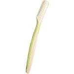 شکلدهی ابرو: از لبه تیغ برای اصلاح خطوط و قسمتهای دقیق استفاده کنید.