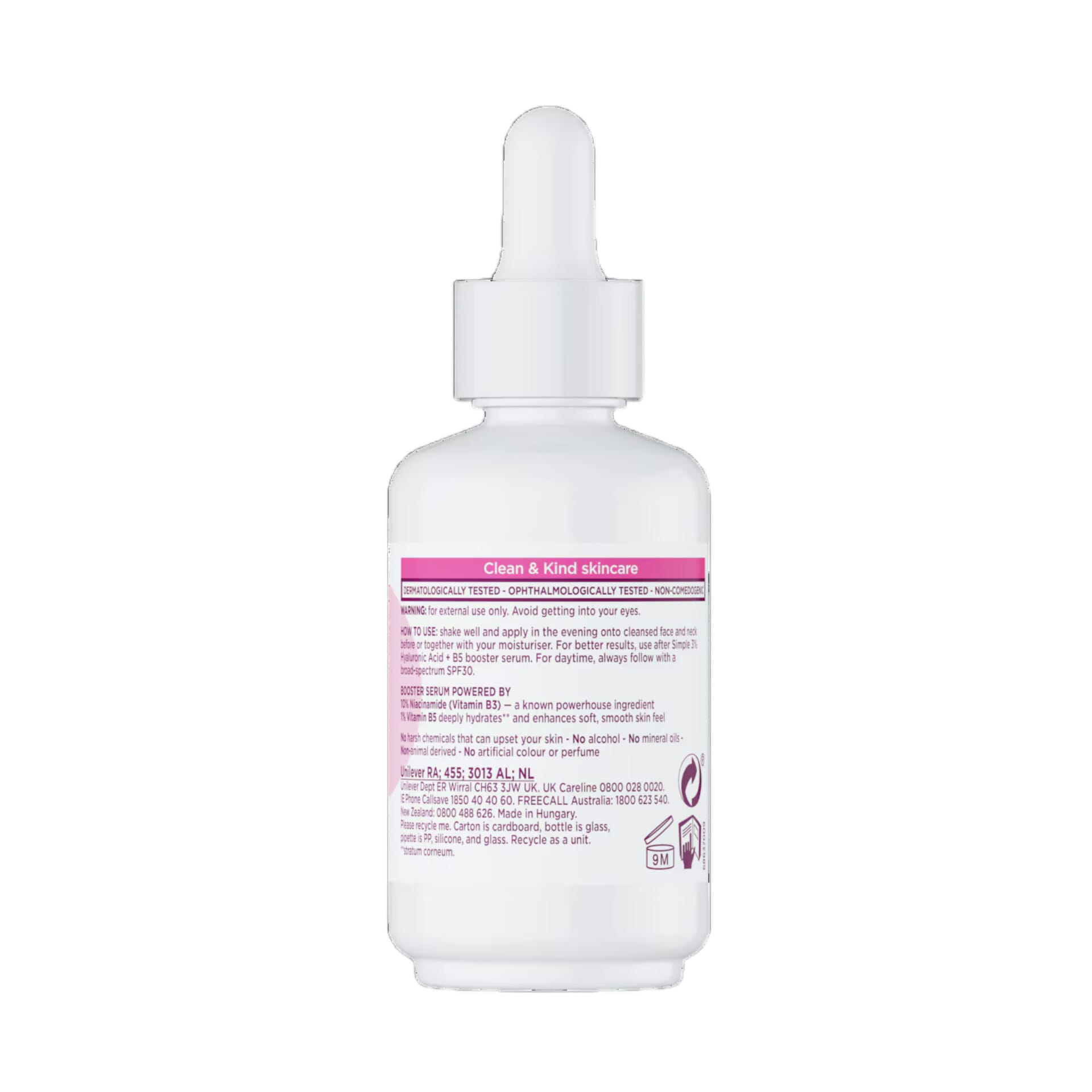 سرم تقویت کننده سیمپل علاوه بر ویتامین B3، حاوی ویتامین B5 نیز میباشد که آبرسان، تسکین دهنده و محافظ پوست در برابر استرسهای محیطی است.